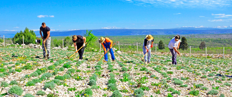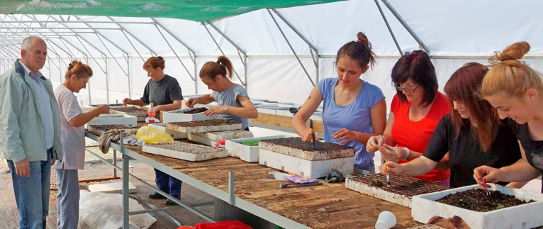 Priprema sadnica je pod stalnim nadzorom (pikiranje) - uvjek radana atmosfera na plantaži tvrtke Eterična ulja d.o.o.