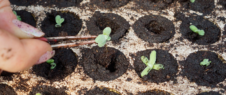 Presađivanje stabljike smilja iz rasada u sadnice smilja (pikiranje).