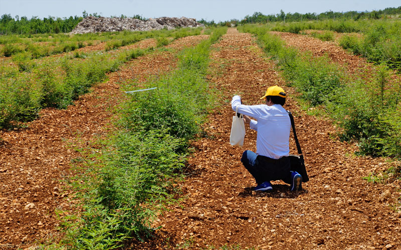 Sjeme kultiviramo u prirodnim uvjetima koji su karakteristični za svaku biljku (sastav tla, voda, količina sunca ...), odgovorno se odnosimo prema nametnicima i korovu. Strogo kontroliramo cijeli ekološki proces proizvodnje sadnica, sve do žetve. Sadnice sadimo u već pripravljeni teren (sastav tla: kamen i zemlja) koji idealno odgovara prirodnom terenu gdje je biljka rasla tisućljećima, kako bi zadržali autentičnost i originalnost.